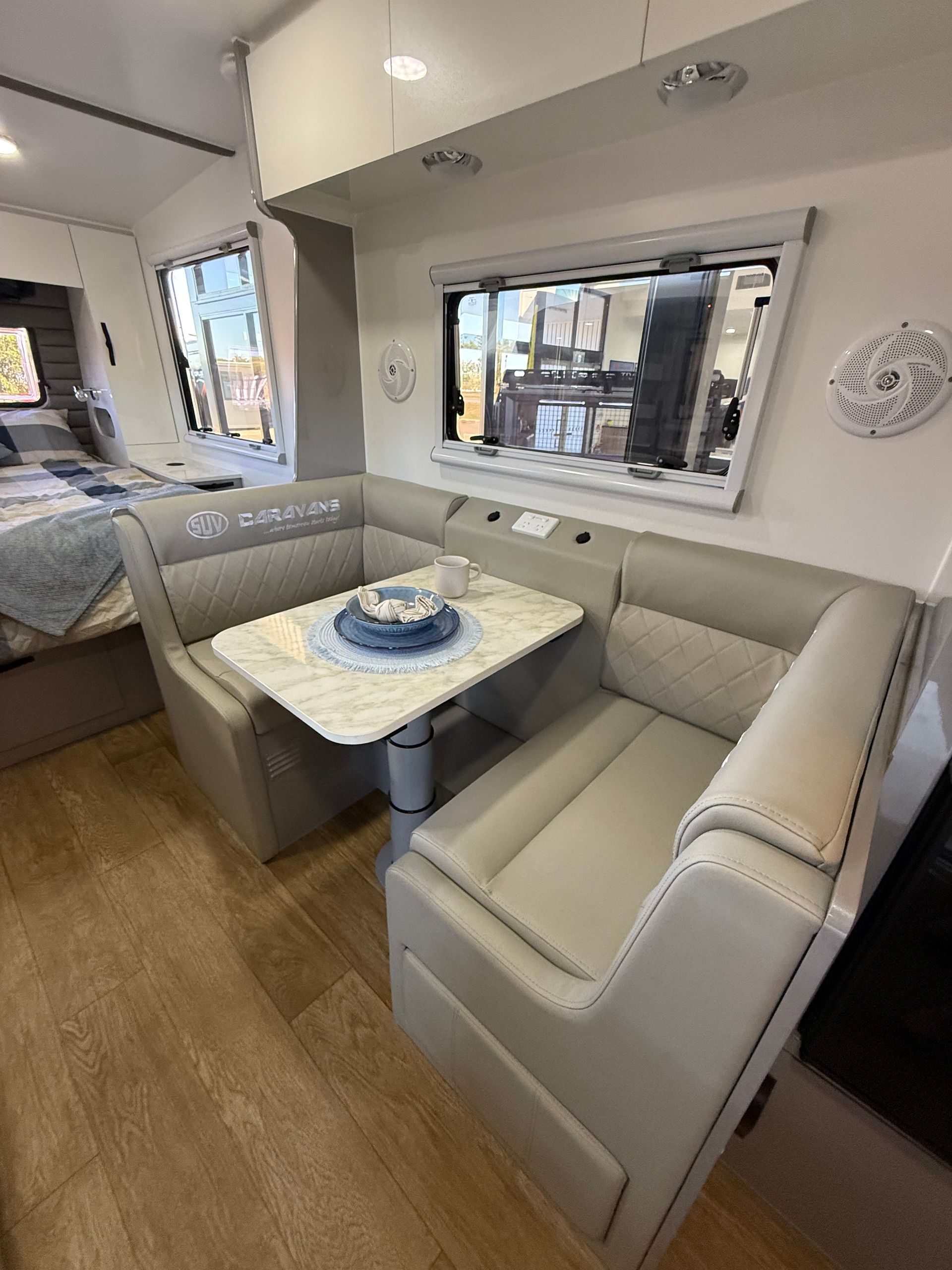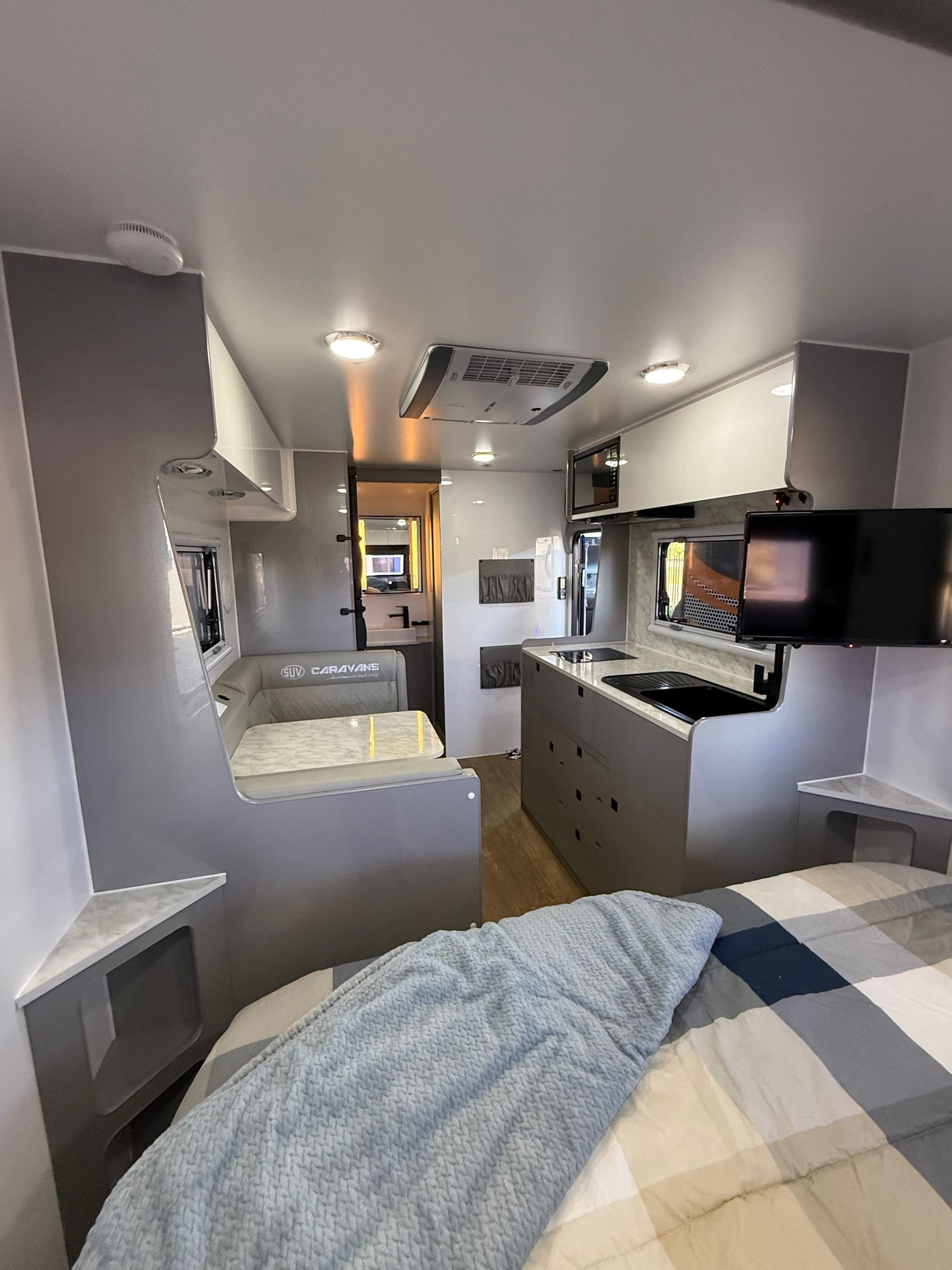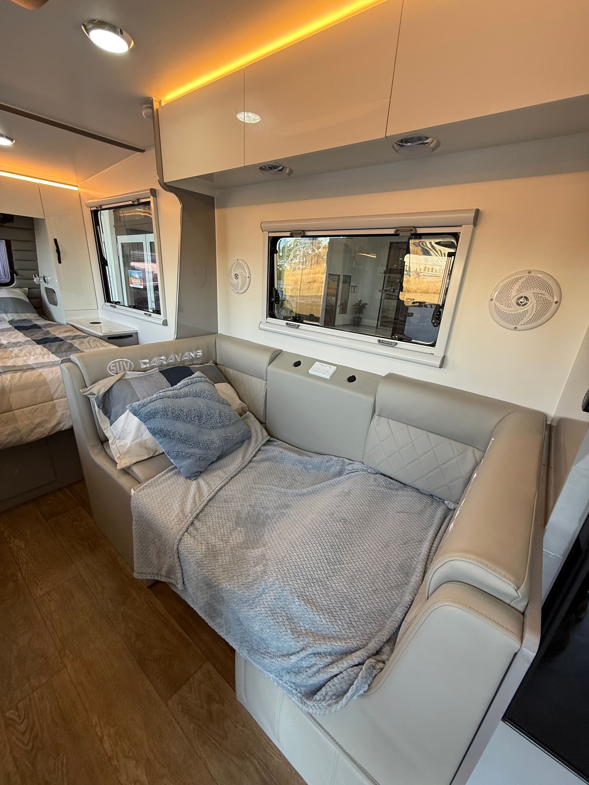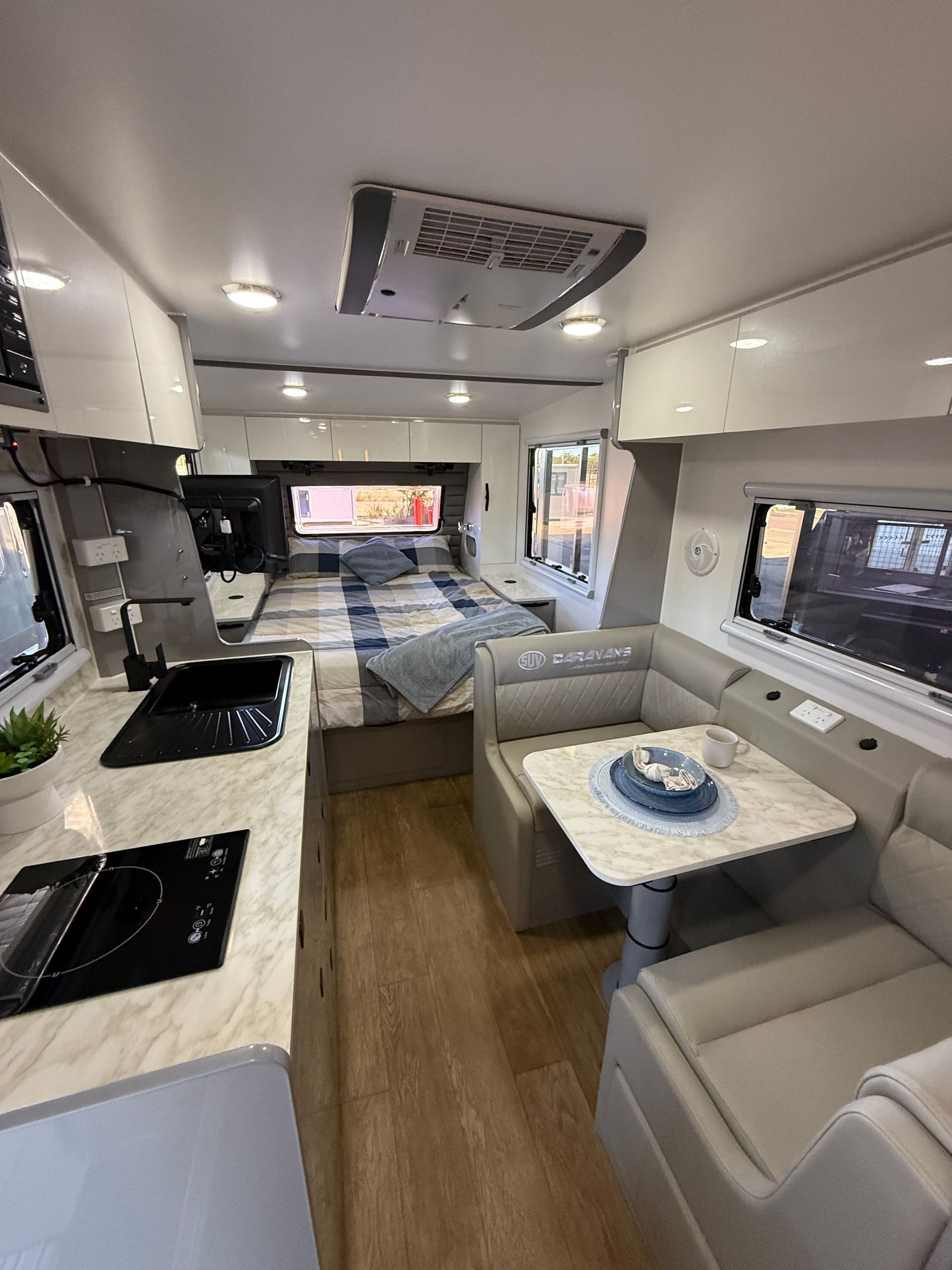 Featuring our famous walk around island bed, external kitchen with fridge drawer and push button rollout awning as standard.