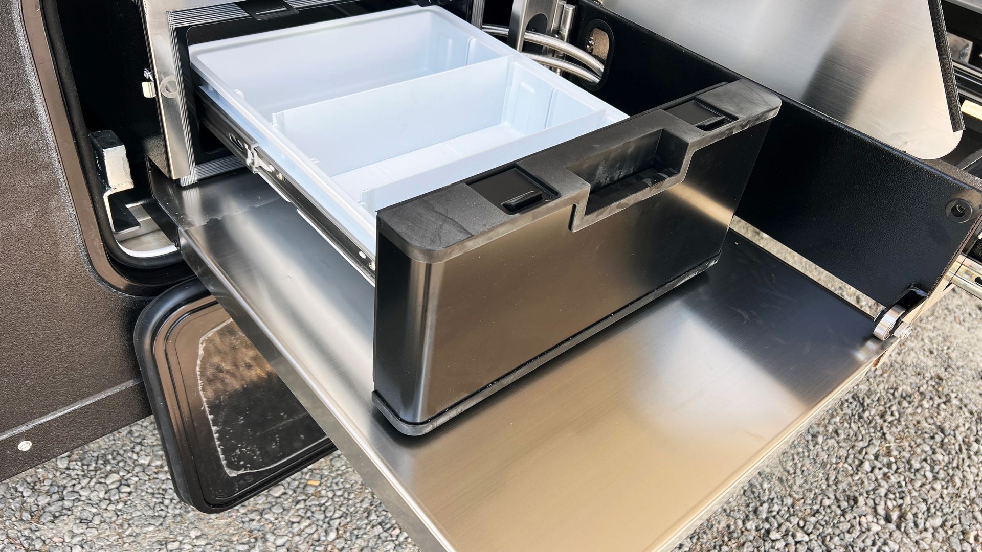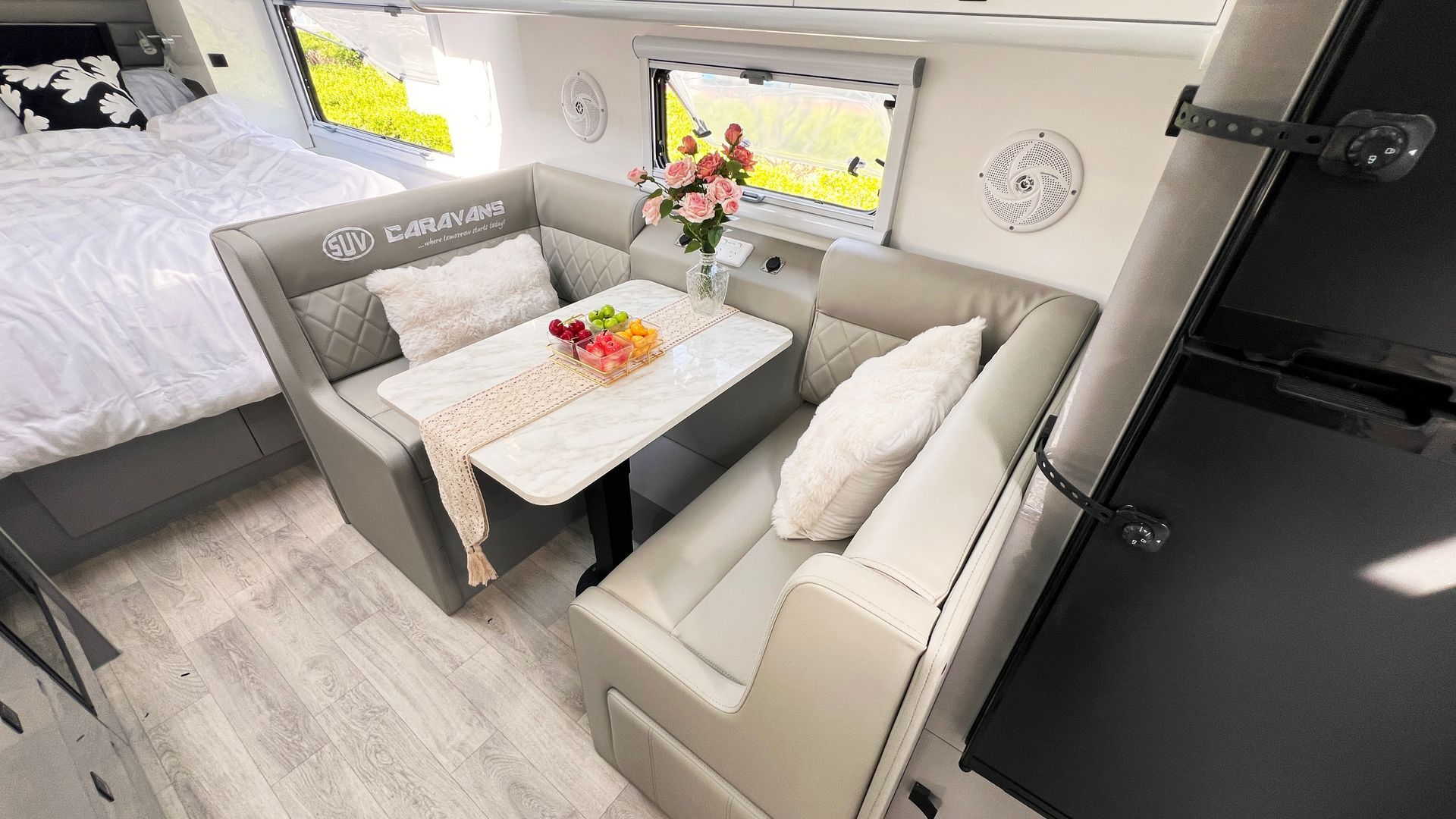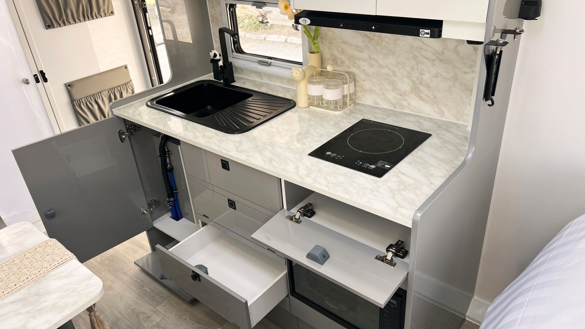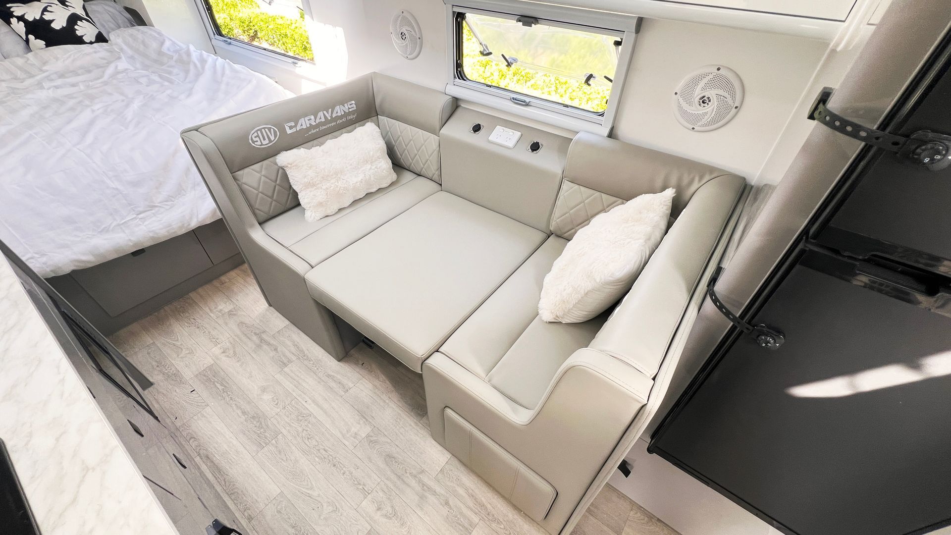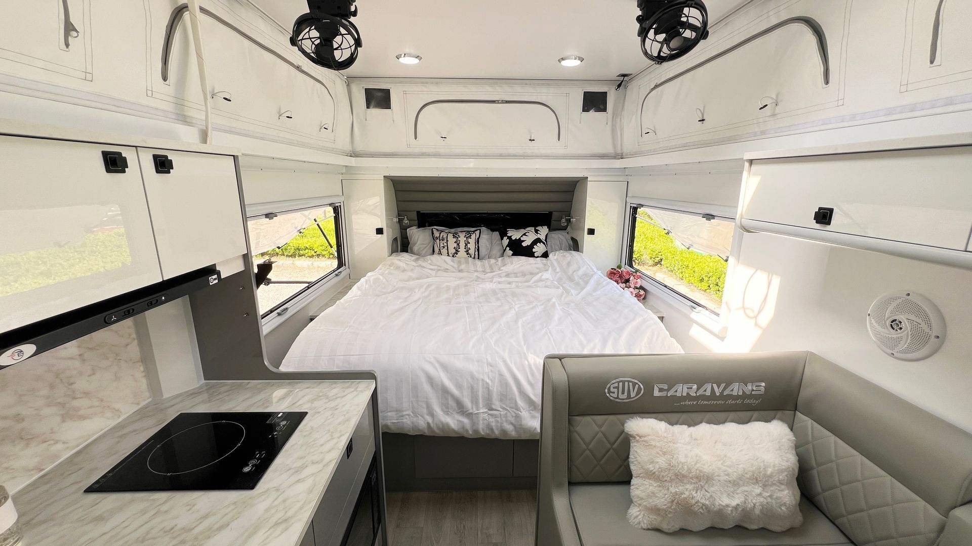Step inside and you’ll find the comforts you’d expect from the big brother, modern appliances, thoughtful storage, smart use of space, and the kind of build quality you can drag from Townsville to Tassie without blinking.