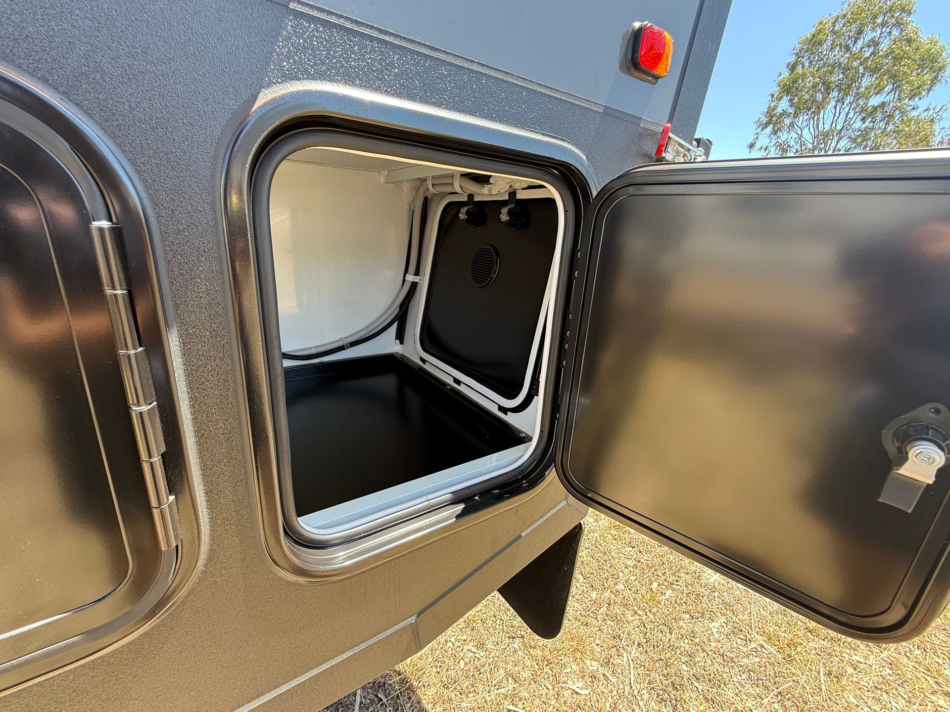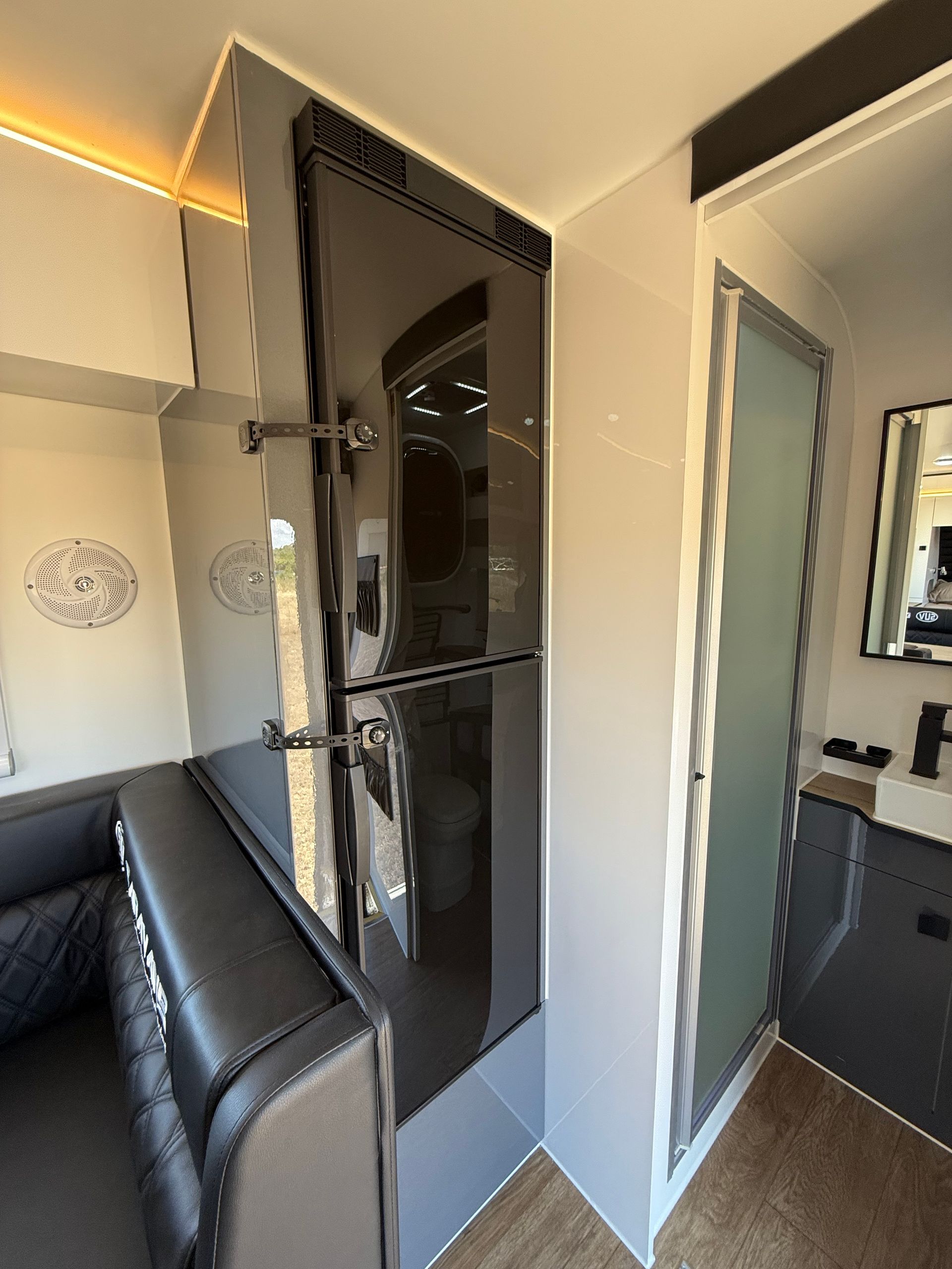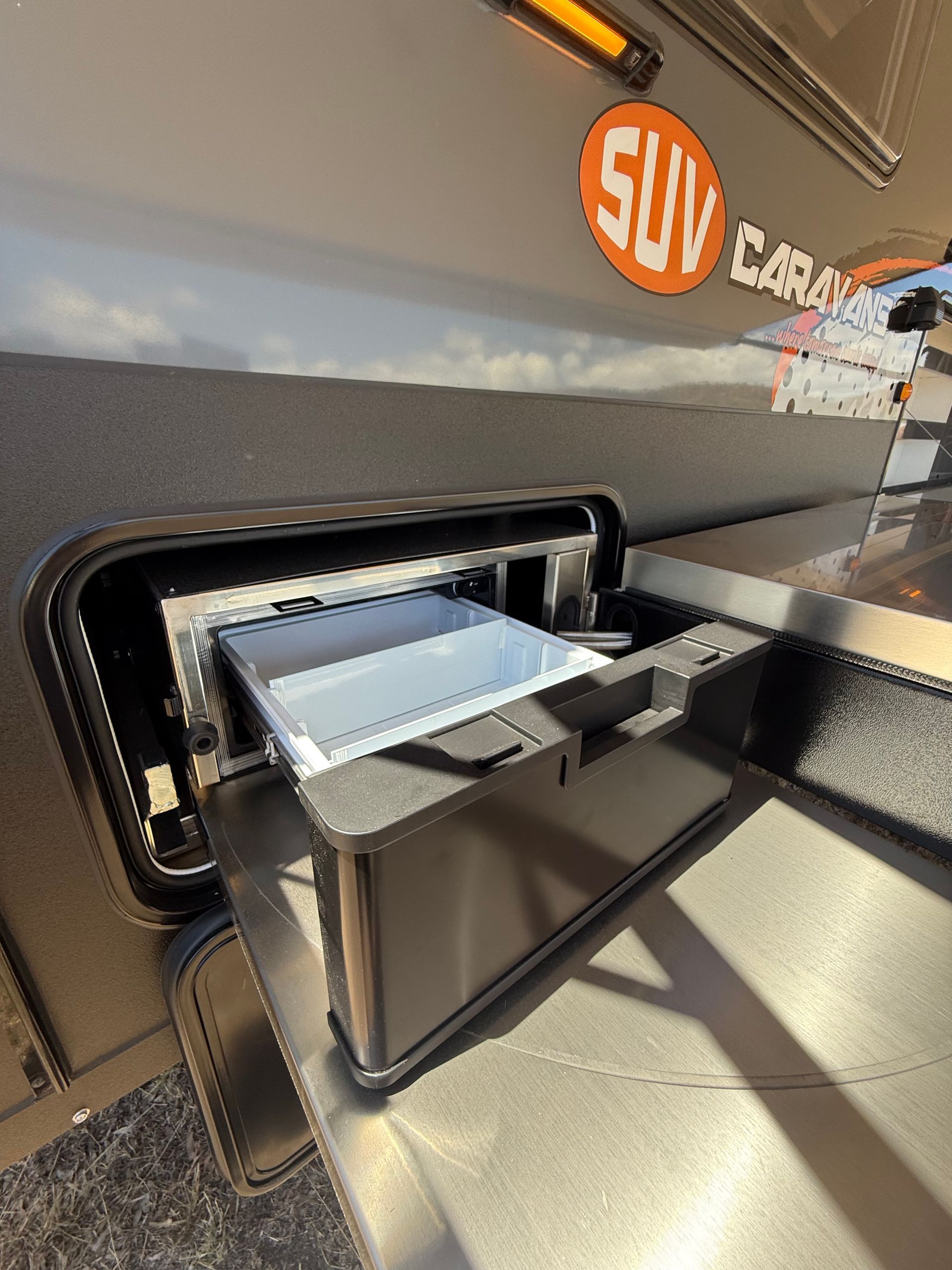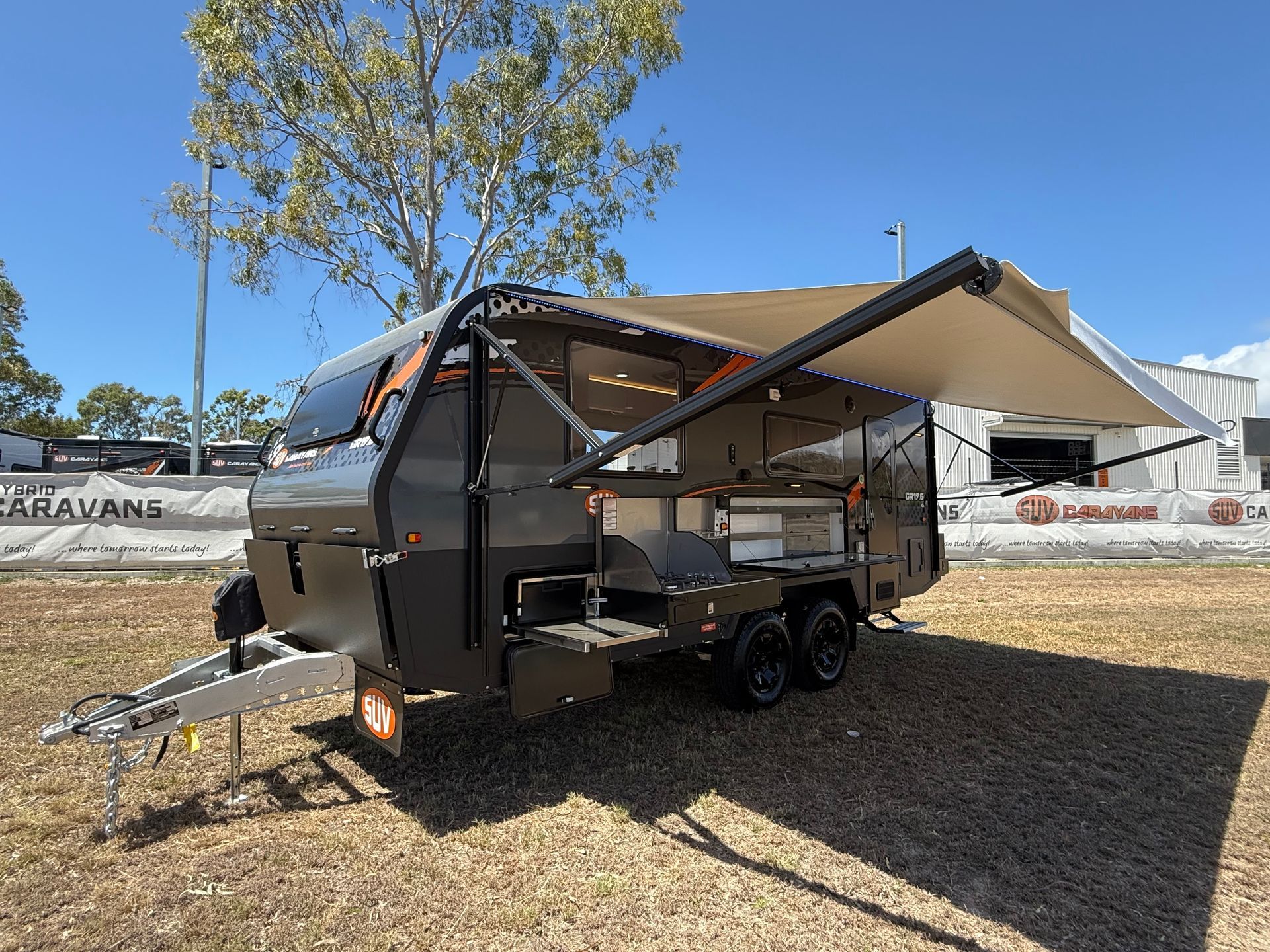 Step inside and you’ll be greeted with our signature walk-around island bed, offering comfort and practicality from the get-go. Outside, the fully equipped external kitchen with fridge drawer pairs perfectly with the push-button rollout awning, creating the ultimate alfresco setup.