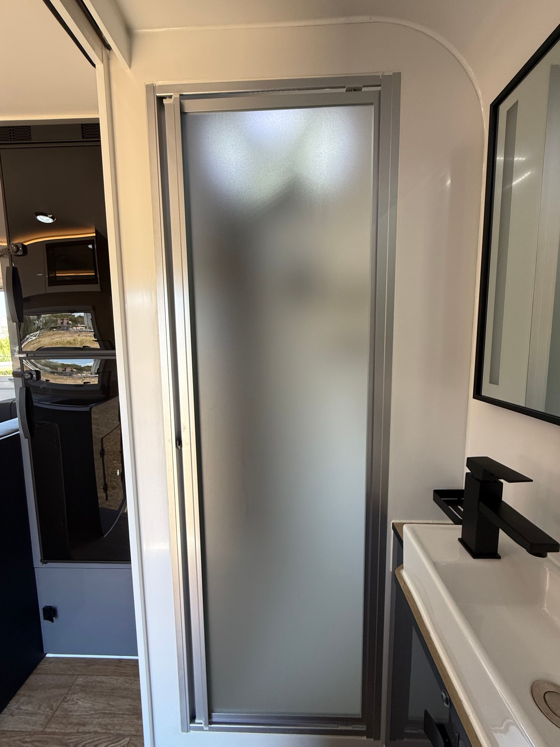 Inside, the GR19.6 shines with its expanded gourmet kitchenette, now boasting an internal oven, grill, and stovetop, alongside a built-in microwave, full-size fridge/freezer, and sink. Whether you’re cooking up camp classics or going full chef, you’ll have every tool at your fingertips.