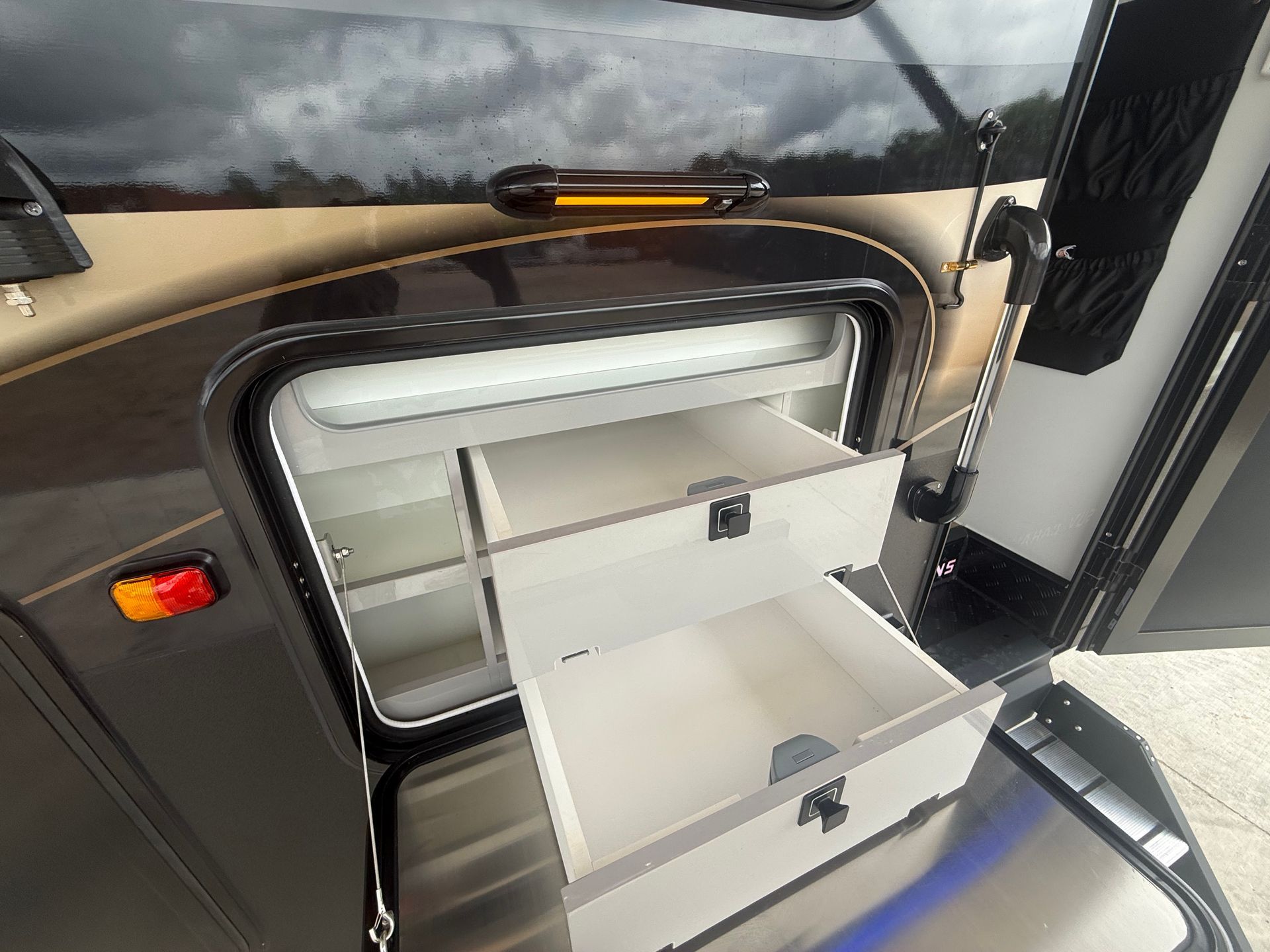 Relax in the comfortable internal lounge or enjoy outdoor cooking with the external slide-out kitchen.