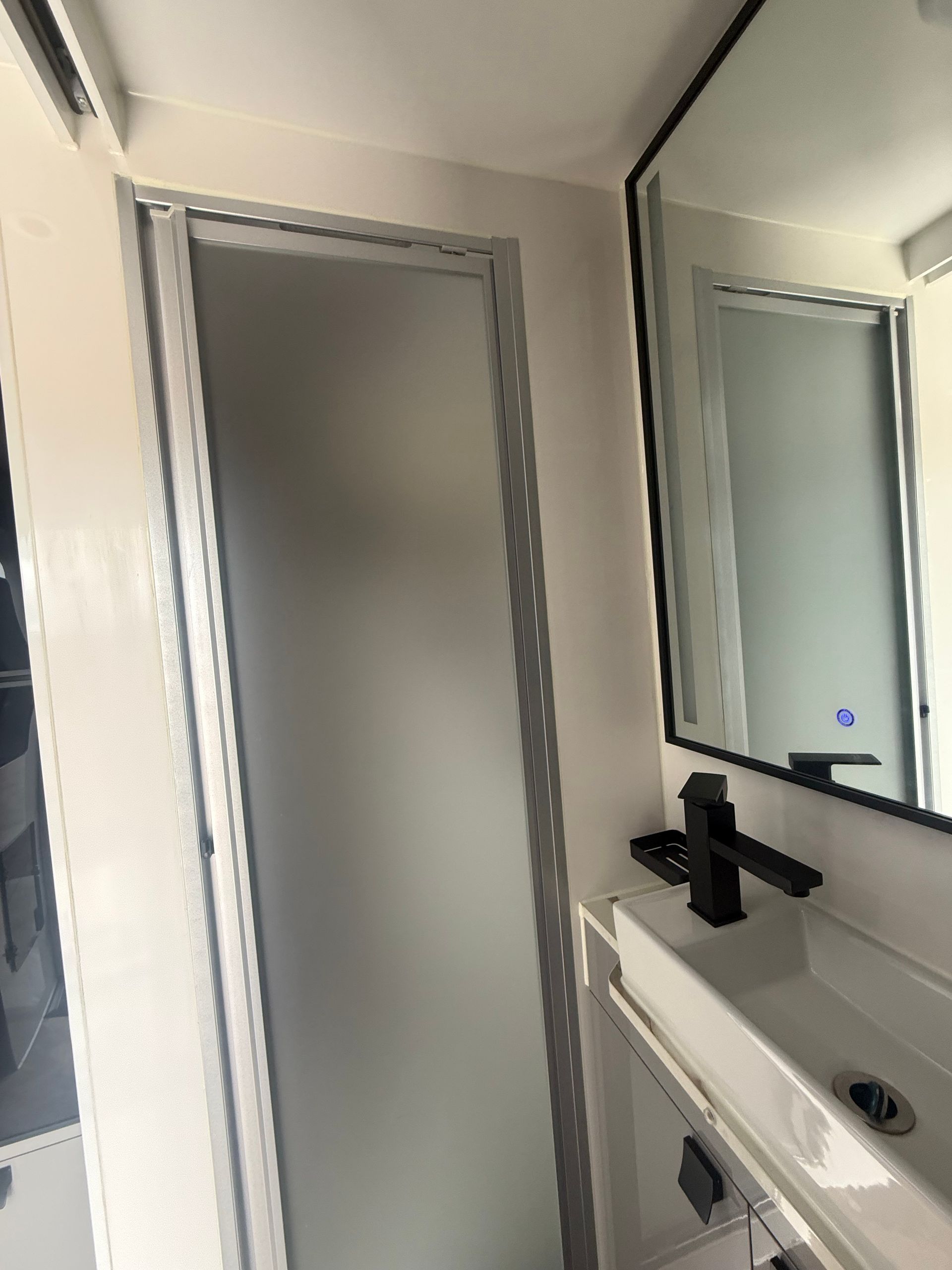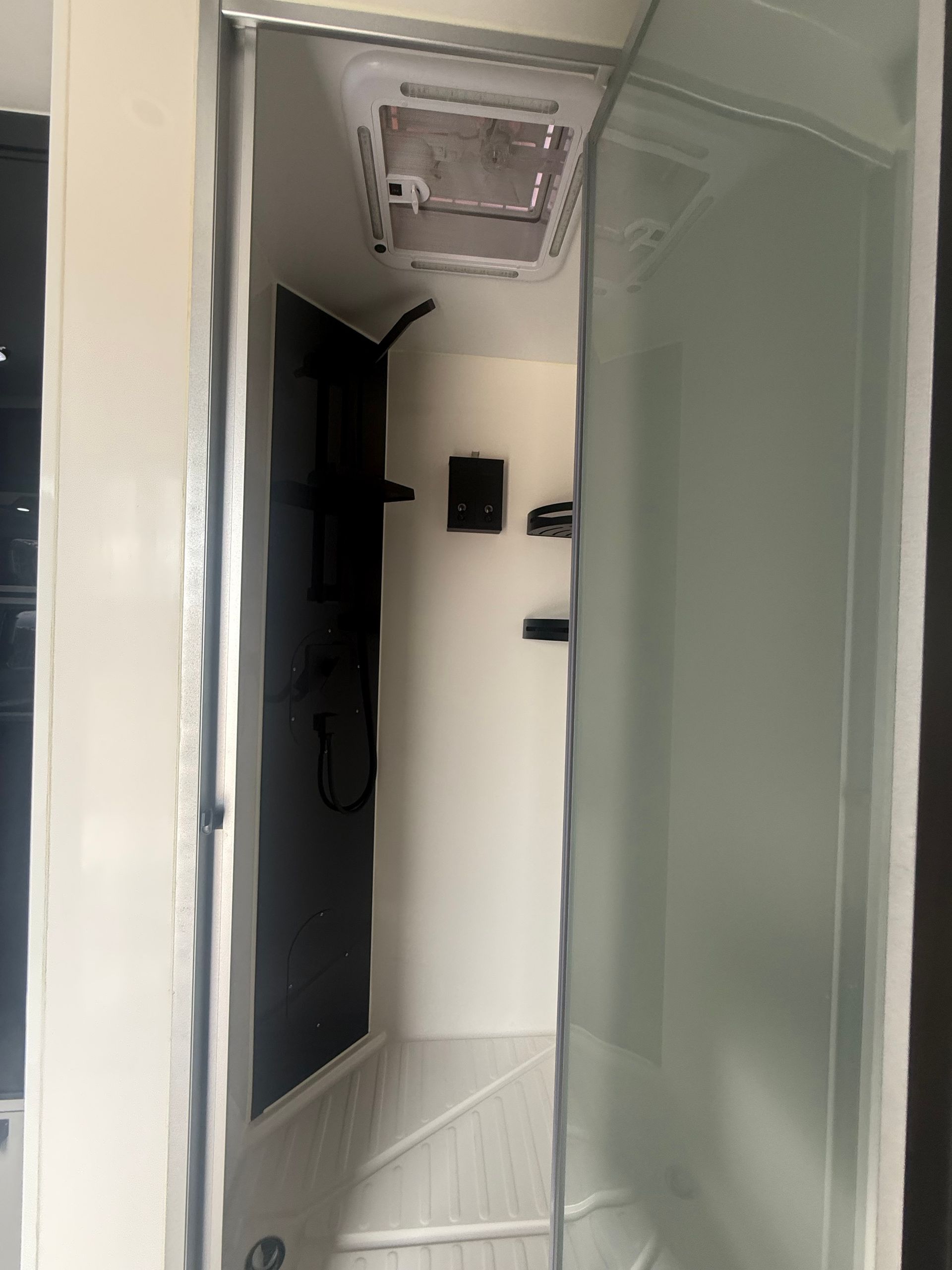 This 2-berth caravan features two single beds for maximized sleeping space and a separate ensuite with shower and toilet for added convenience.